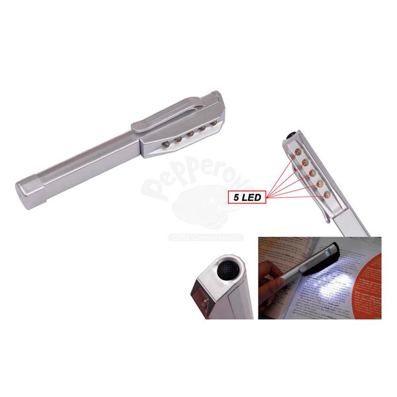 Lanterna Bastão com 5 Lâmpadas prata. Produto em plástico resistente.