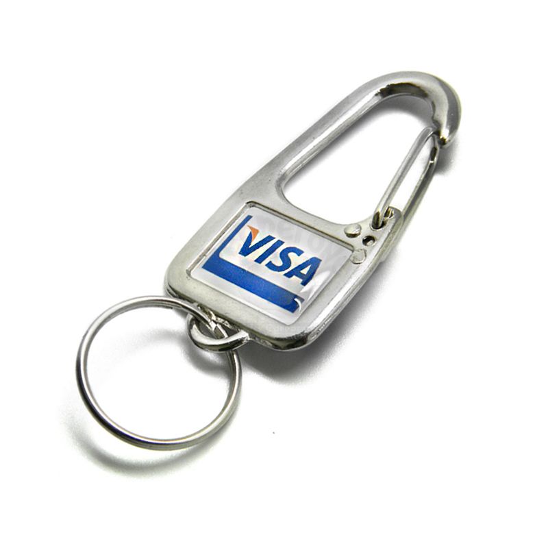 Personalizado Chaveiro promocional com etiqueta resinada mosquetão