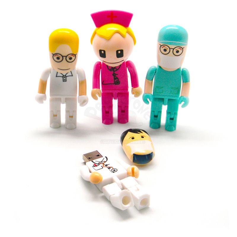 Promocional Pen drive personalizado em forma de boneco médico e enfermeiro(a) em diversas cores. Compatibilidade: Pc ou Notebook com USB. Transferência: Alta velocidade (USB 2.0). Material: Plástico