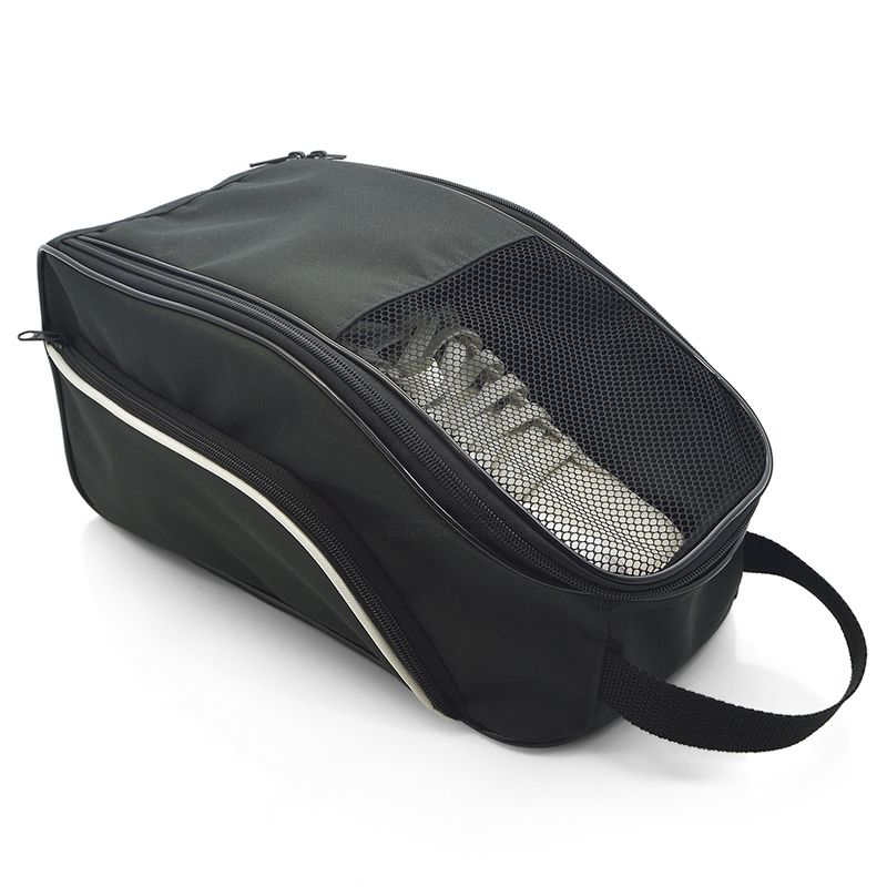 Porta tênis para brindes corporativos. Ideal para carregar seu tênis com muita segurança. Confeccionado em poliéster 600, possui visor frontal com tela, bolso lateral, alça de mão e fechamento com zíper, oferecendo muita praticidade e resistência.