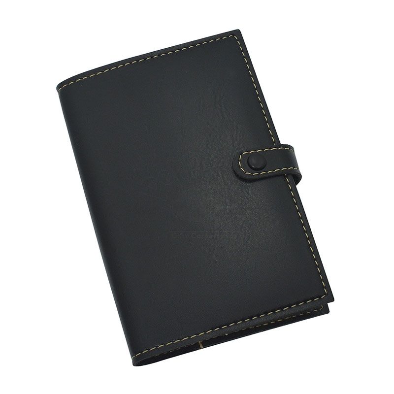 Bloco de Anotações produzido em couro sintético, possui aproximadamente 80 folhas lisas sem pautas e lingueta para maior segurança ao transportá-lo.