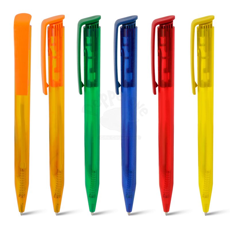 esferográfica azul com acionamento no clip, escrita macia e super confortável.