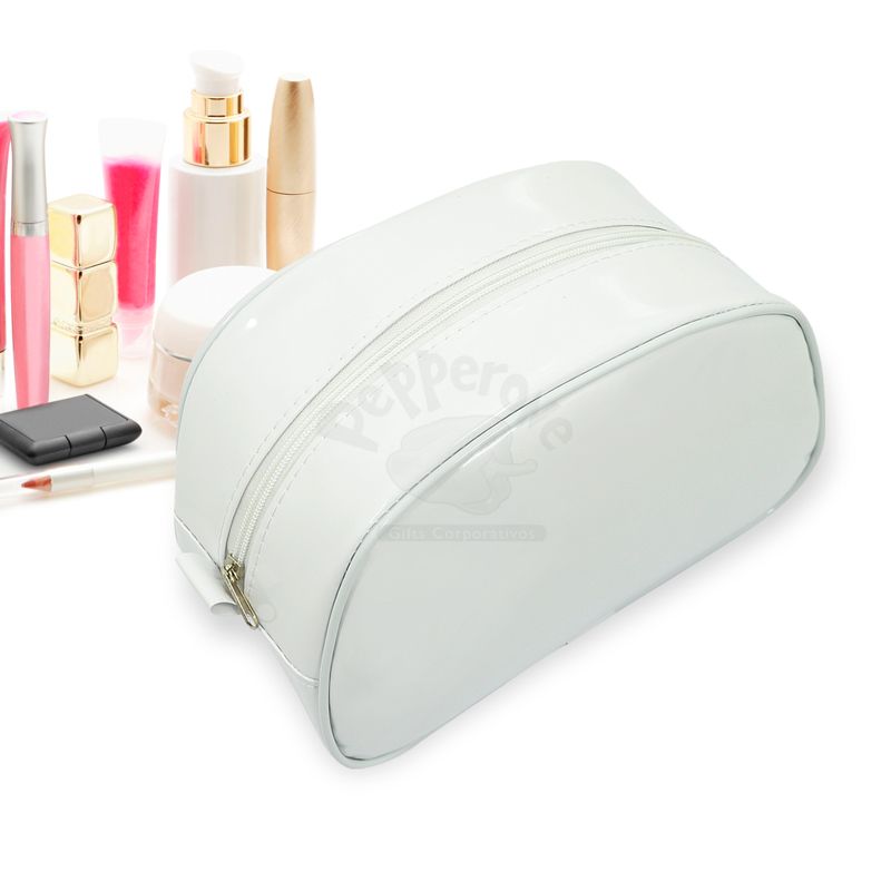 Possui acabamento em alto brilho verniz, vivo brilhante e compartimento com fechamento por zíper.