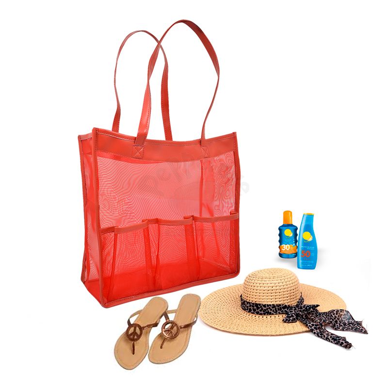 Sacola de praia personalizada com alça e acabamentos em couro sintético, bolsos frontais, tela em nylon resistente e um excelente espaço interno. ideal para eventos corporativos e brindes promocionais.