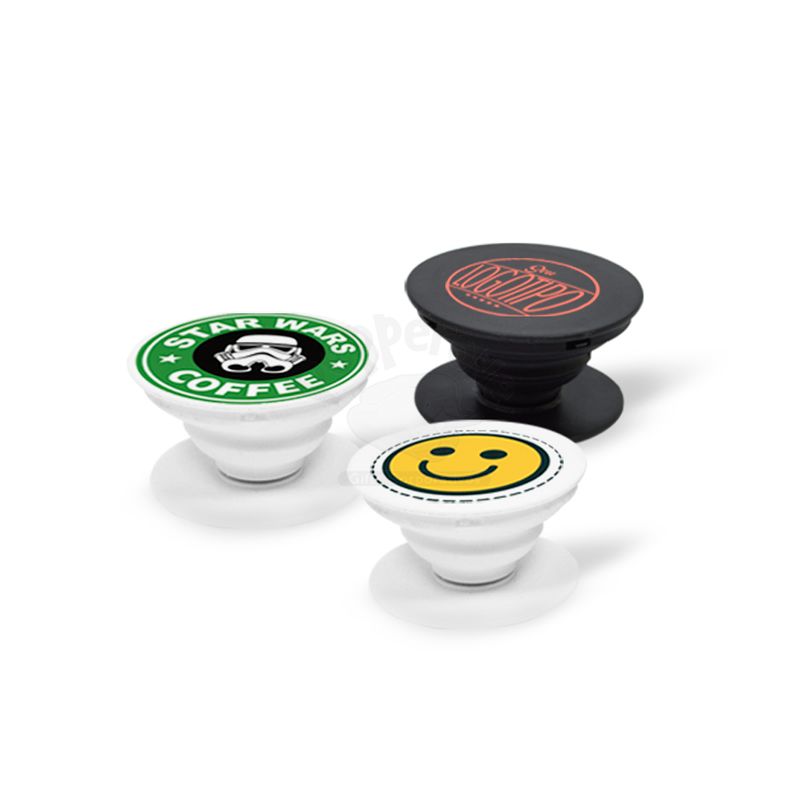 Suporte personalizado para celular com base colante de alta fixação. Ele conta com um suporte principal para ser fixado no verso do aparelho, garantindo mais segurança ao usá-lo entre os dedos para tirar fotos, selfies e até mesmo ao caminhar. A base é retrátil em 2cm, ideal para usá-lo como apoio. Além disso, acompanha um suporte secundário para fixação vertical em superfícies lisas, funcionando como suporte veicular enquanto você dirige.