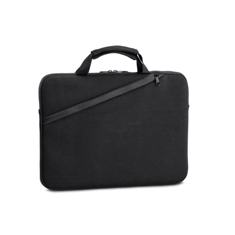 Pasta para notebook personalizada produzida Soft shell de alta densidade, Possui bolso frontal e compartimento interno para notebook de 14''.