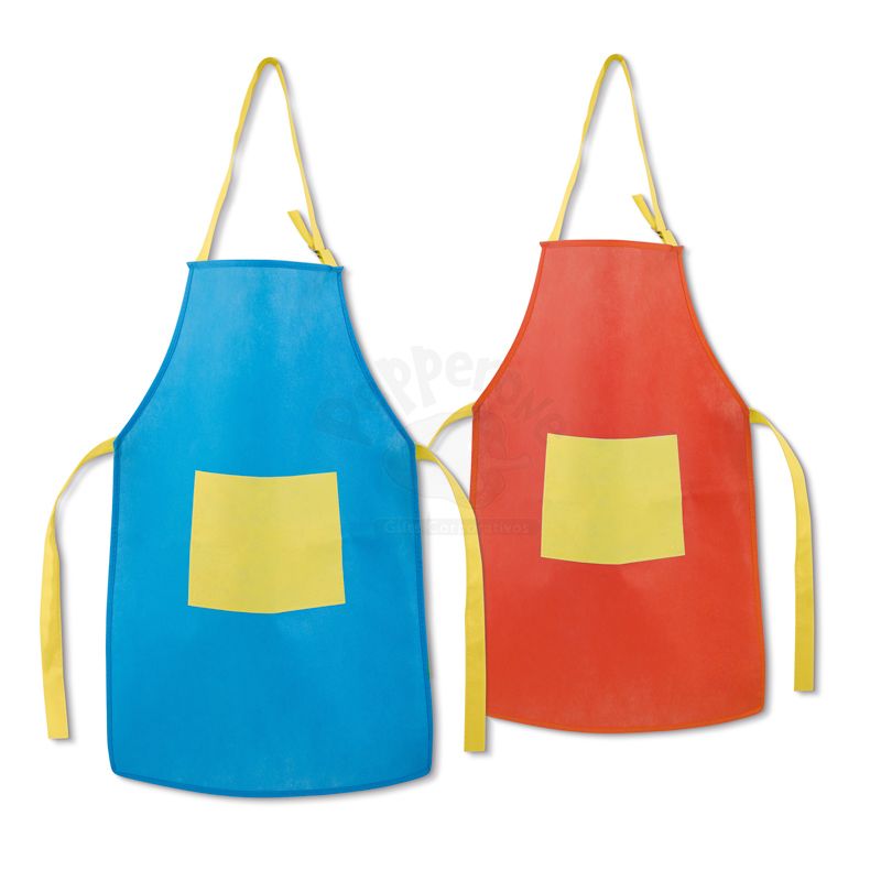 Avental para criança personalizado produzido em Non-woven 80 g/m². Possui fivela ajustável e bolso frontal. Ideal para brindes promocionais e eventos corporativos.