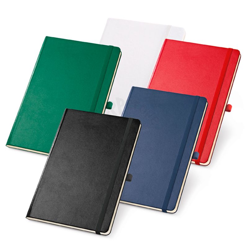Bloco de anotações produzido em couro sintético com capa dura, possui elástico para fechamento, bolso interior, porta caneta e 80 folhas não pautadas na cor marfim.