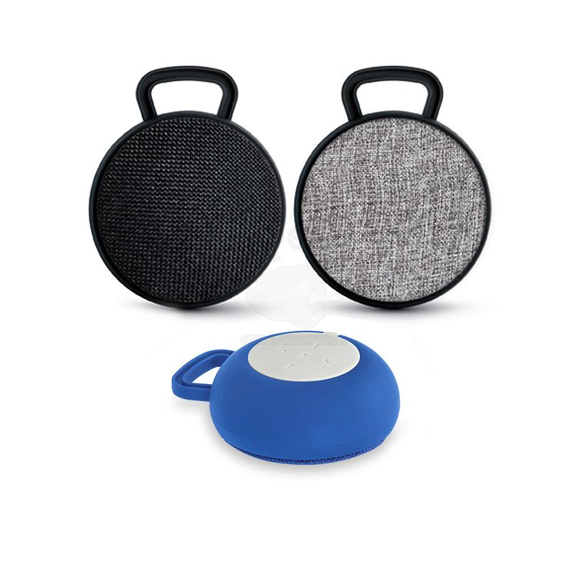 Caixa de som bluetooth com transmissão de musica sem a necessidade de fios, produzido em tecido e poliester com acabamento emborrachado e gancho superior para transporte. Possui autonomia de até 3h com bateria recarregavel, potência 3W, painel no verso com opçoes de atende chamadas telefonicas, controle de volume, microfone e conexão à playlist do dispositivo móvel. Incluso cabo par carregamento.