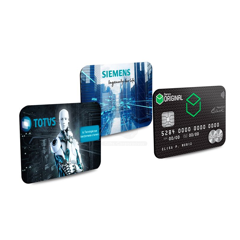 Mouse pad personalizado revestido em PVC com acabamento fosco e base inferior emborrachado com 3mm antideslizante. Gramatura da impressão 240gr. Ideal para brindes personalizados e eventos corporativos.