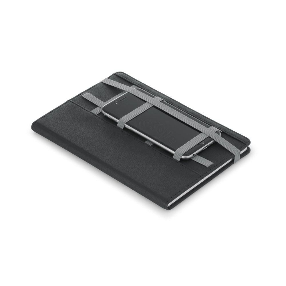 Caderno personalizado com capa dura em material sintético almofadado, 80 folhas sem pautada na cor branca. Ideal para divulgar sua empresa em eventos corporativos, brindes personalizados e campanhas promocionais. Caneta não acompanha o produto.