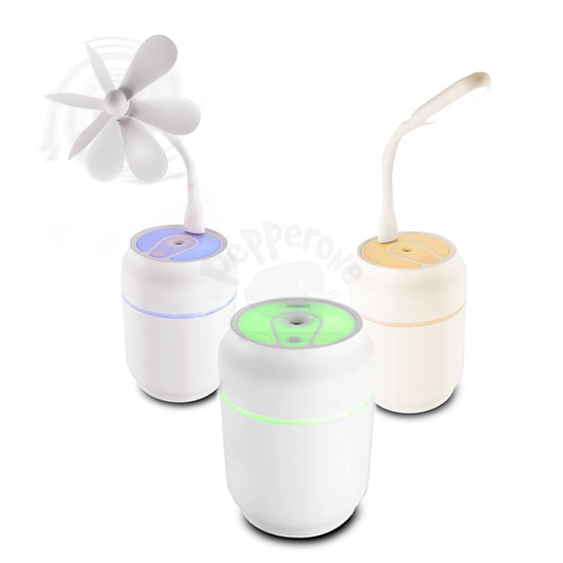 Umidificador de mesa personalizado produzido em ABS com toque emborrachado. Contém 1 lampada LED com saída USB, 1 hélice USB e umidificador com funcionamento por 8 horas com capacidade para 200ml. Possui entrada USB superior com tampa rosqueável, saída USB para lâmpada LED ou Ventilador, base anti-derrapante, filtro interno substituível (extra), entrada micro USB lateral para funcionamento. A iluminação externa colorida somente será acionada quando o botão touch power for precionado por 2 segundos. Ideal para divulgar sua empresa em eventos corporativos, brindes personalizados e campanhas promocionais.