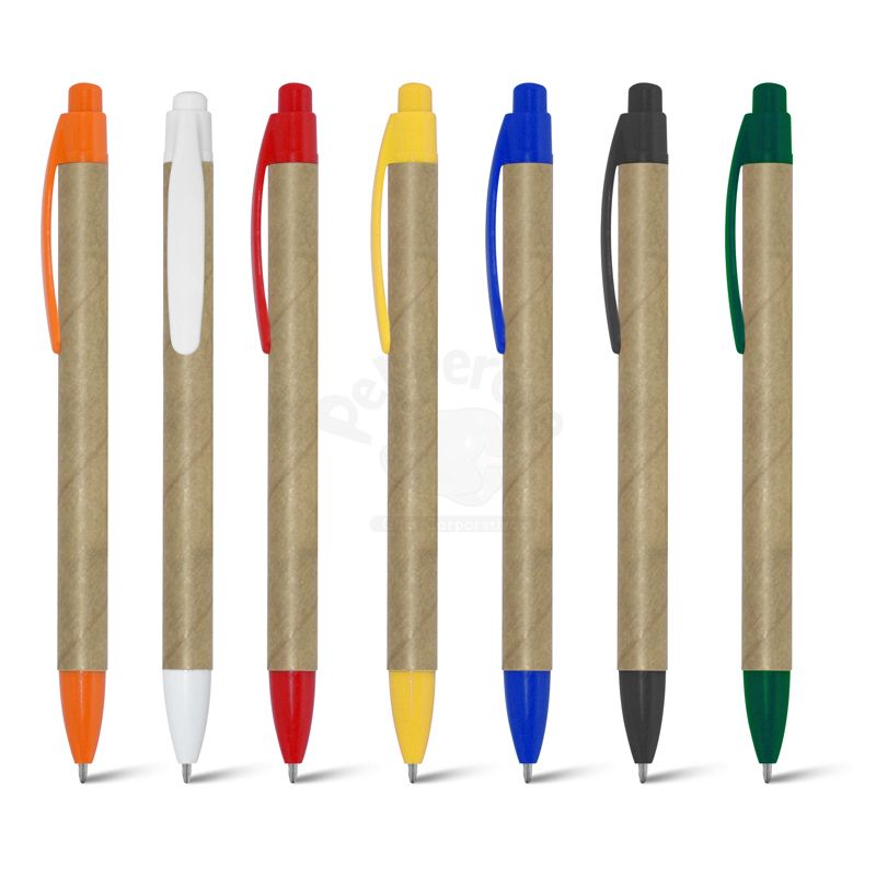 Caneta ecológica personalizada produzida em 100% papel reciclado. Possui ponteira plástica com esferográfica na cor azul e clip plástico. ideal para divulgar sua empresa em eventos corporativos, brindes personalizados e campanhas promocionais.