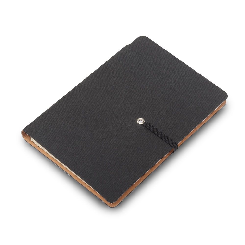 Bloco de anotações personalizado produzido em papel Kraft com capa dura com acabamento em textura aveludada, possui fecho de elástico, miolo sem pauta com 48 folhas na cor bege, 4 blocos autocolantes coloridos e 2 blocos amarelos médio e grande todos contendo aproximadamente 30 folhas. Ótima opção para divulgação de sua empresa utilizando o logotipo gravado no produto para distribuição em eventos promocionais, brindes corporativos e campanhas de marketing.