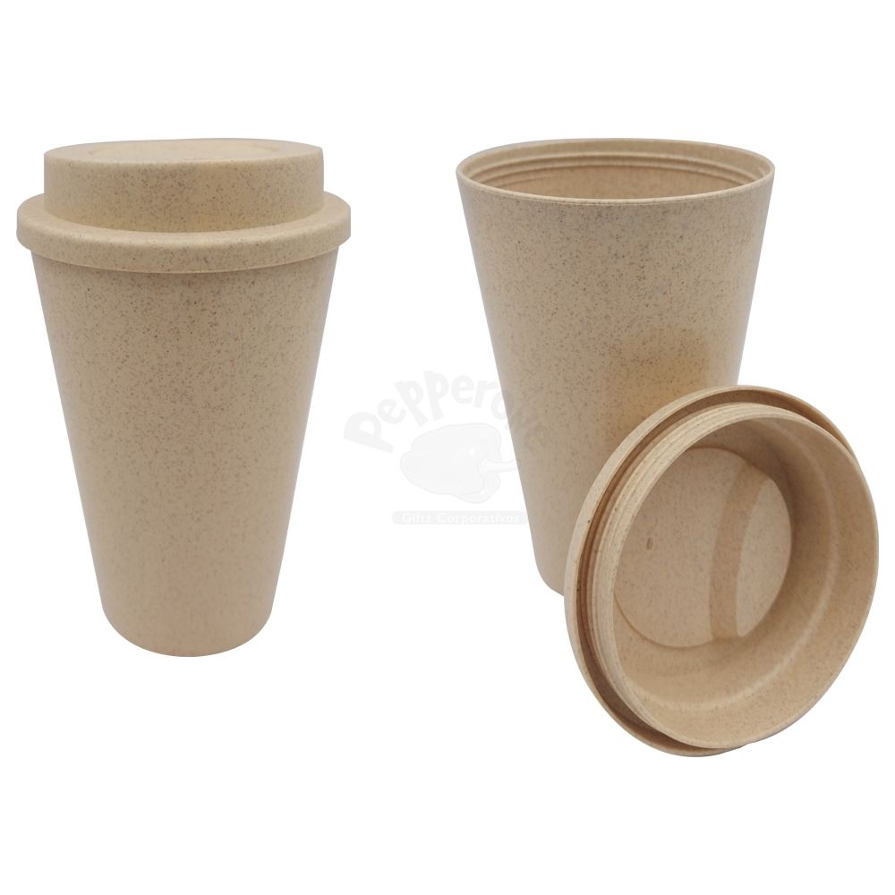 Copo ecológico personalizado produzido com fibra de bambu. Possui capacidade para 450ml e tampa rosqueavel com orifício para saída da bebida. Ideal para divulgar sua empresa em eventos corporativos, brindes personalizados e campanhas com apelo sustentável ao meio ambiente.