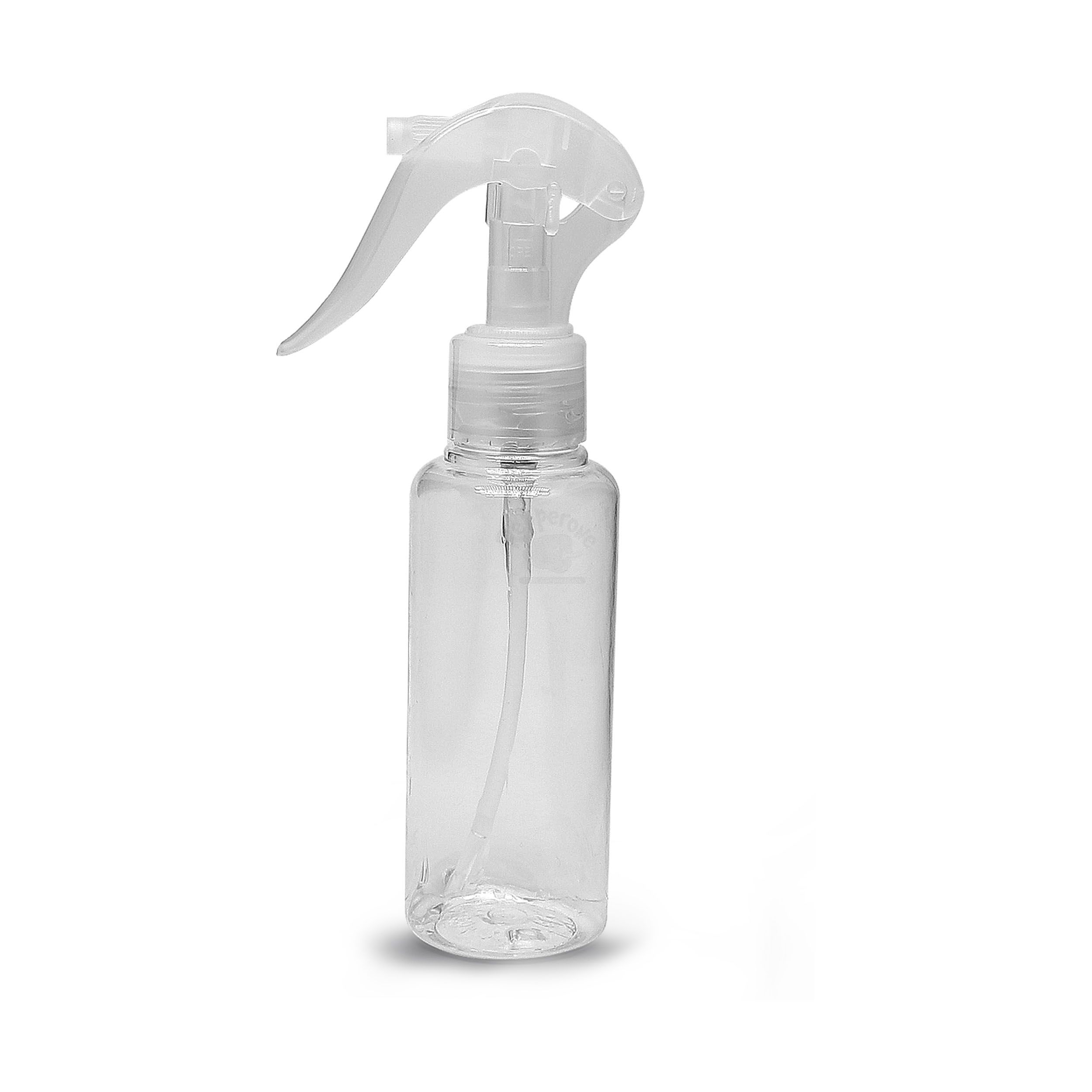 Borrifador plástico personalizado produzido em polietileno transparente, possui gatilho rosqueável com trava de segurança, jato spray de até 10 cm de abertura e frasco com capacidade para 100ml que pode ser usado com álcool em gel. Ideal para brindes corporativos e eventos promocionais.