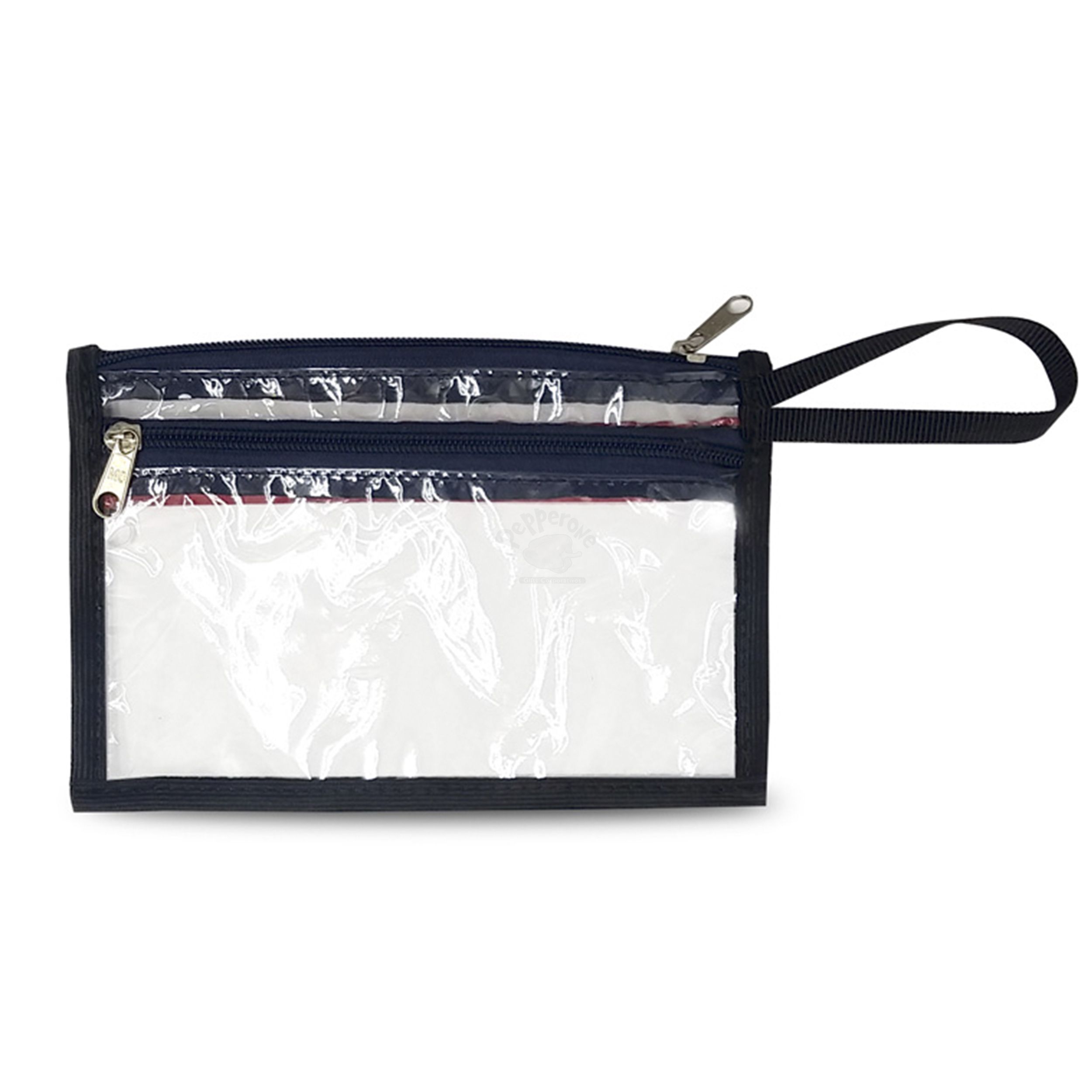 Necessaire personalizada produzida em PVC Cristal com 3 compartimentos separados ideais para uso de máscaras de proteção após o uso onde voce pode guardar separadamente em um lado para máscaras usadas e outro para máscaras limpas. Possui compartimento central para objetos pessoais do dia dia, acabamento em nylon, alça de mão e zíperes de metal. Ideal para brindes promocionais e eventos corporativos.