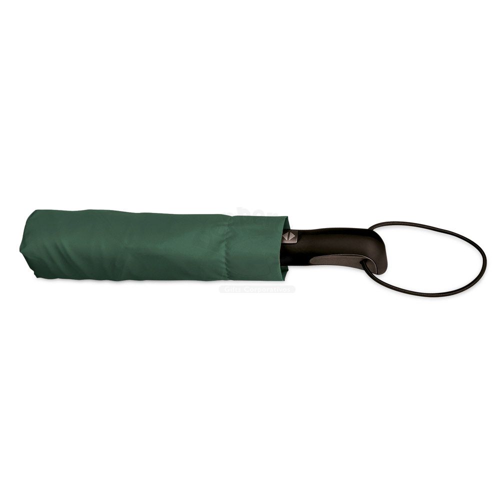 Guarda-chuva dobrável personalizado produzido em poliéster 190T, possui bolsa personalizada para guardar após o uso, cabo emborrachado e abertura automática. Ideal para enevtos corporativos e brindes promocionais. Guarda-chuva: ø980 x 320 mm | Bolsa: ø50 x 240 mm