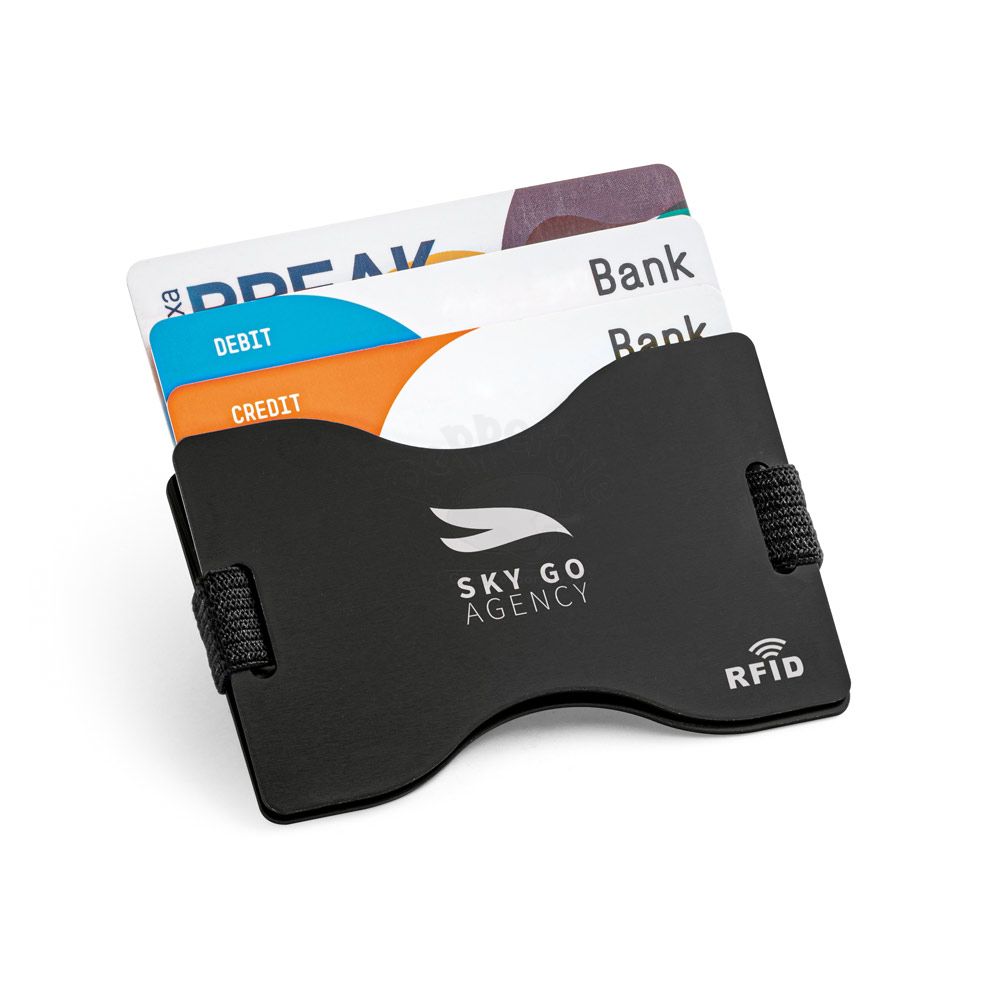 Porta cartão em alumínio personalizado com acabamento fosco. Possui elástico lateral para fixação dos cartões, capacidade para 12 cartões não inclusos e bloqueio de RFID Identificação por radiofrequência ou ("Radio-Frequency IDentification" ) é um método de identificação automática através de sinais de rádio, recuperando e armazenando dados remotamente através de dispositivos denominados etiquetas RFID. Ideal para divulgar sua empresa em eventos corporativos, brindes personalizados e campanhas promocionais. Cartões não acompanham o produto.