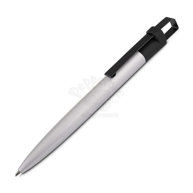 Caneta de Metal Personalizada com acionamento por click, com design inovador. Ideal para brindes promocionais e eventos corporativos.