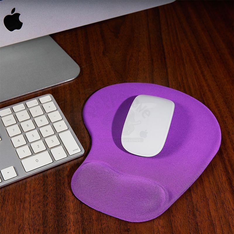 Mouse pad ergonômico personalizado revestido em neoprene com acabamento fosco, base inferior emborrachado com 5mm antiderrapante, que ajuda a impedir o deslizamento do mouse pad e apoio de punho revestida em silicone confortável. Ideal para brindes personalizados e eventos. *Imagem ilustrativa