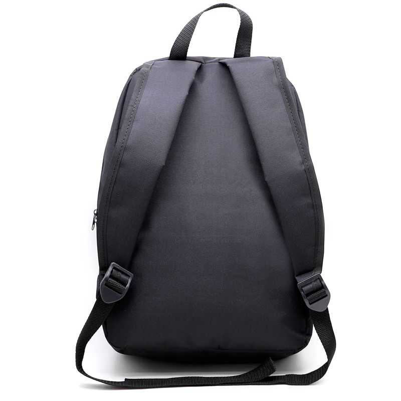 Mochila personalizada produzida em nylon com amplo espaço interno. Possui bolso frontal, alças ajustáveis, alça de mão e zíper com puxadores de metal. Ideal para brindes promocionais e eventos corporativos.