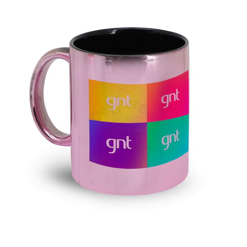Canecas de porcelana metálica em alto brilho com interior preto. Disponíveis em duas cores, cromo e rosa. Possui alça resistente e capacidade para 325ml. Use e abuse de sua criatividade, ótima para sublimações como ilustrações, frases, declarações. Ideal para brindes promocionais e eventos corporativos.