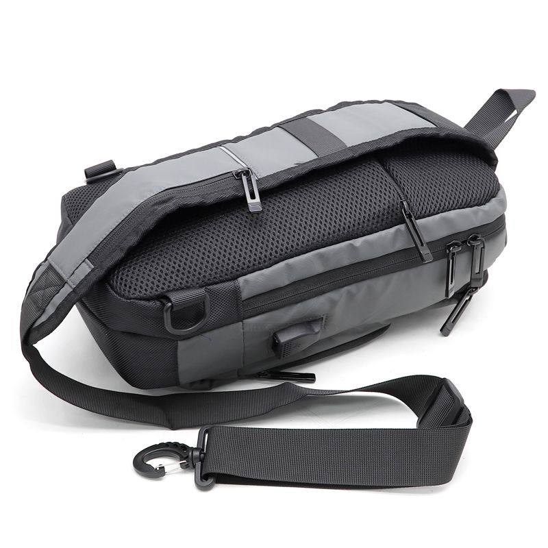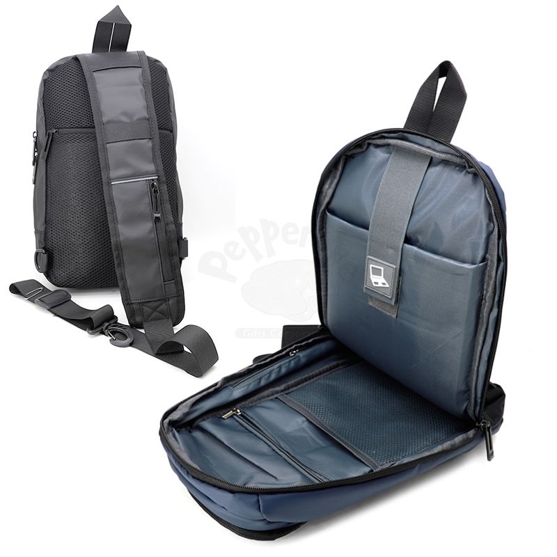 Mini mochila personalizada produzida em tecido à prova de água. Possui alça de ombro ajustável com engate rápido e zíper, engates traseiros laterais / destro - canhoto, zíper traseiro, costas almofadadas, 3 bolso frontais com compartimento para 2 canetas e 1 bolso para objetos pessoais, 4 compartimentos internos 1 para objetos pessoais, 1 compartimentos para tablet / iPad, 1 bolso interno com fechamento por zíper, 1 bolso com telinha em nylon, 1 adaptador lateral com saída USB externo com cabo acoplado permitindo a conexão de um carregador portátil (Power Bank não acompanha o produto.) de dentro da mochila para transferência da carga ao lado externo, zíperes de metal e tecido à prova de àgua. Ideal para brindes promocionais e eventos corporativos. Obs: Para a entrada lateral USB funcionar como carregador, é necessário a aquisição de um de nossos Power Banks.
