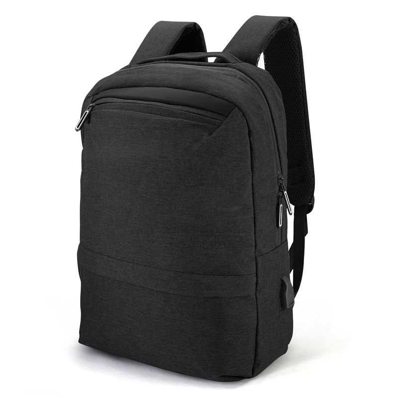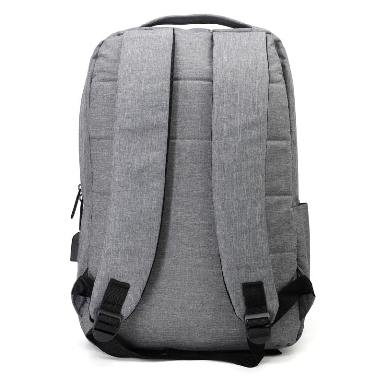 Mochila para notebook personalizada produzida em nylon. Possui bolso principal com compartimento para notebook de 14 polegadas, alça e detalhe frontal em material sintético, dois bolsos frontais ambos com fechamento por zíper, bolso lateral, adaptador USB externo com cabo acoplado permitindo a conexão de um carregador portátil (Power Bank não acompanha o produto.) de dentro da mochila para transferência da carga para o lado externo, alças de costas ajustáveis com acabamento almofadado e zíperes de metal diferenciados com pintura personalizada. Ideal para brindes promocionais e eventos corporativos. Obs: Para a entrada lateral USB funcionar como carregador, é necessário a aquisição de um de nossos Power Banks.