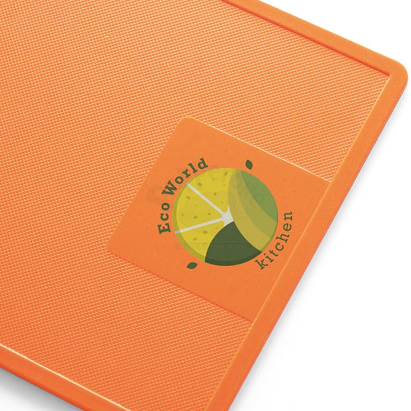 Tábua de corte personalizada produzida em bambu com(50%) e PP (50%). Contém um quadrado liso no fundo da tábua adequado para personalização. Ideal para pequenos cortes de alimentos e legumes em geral.