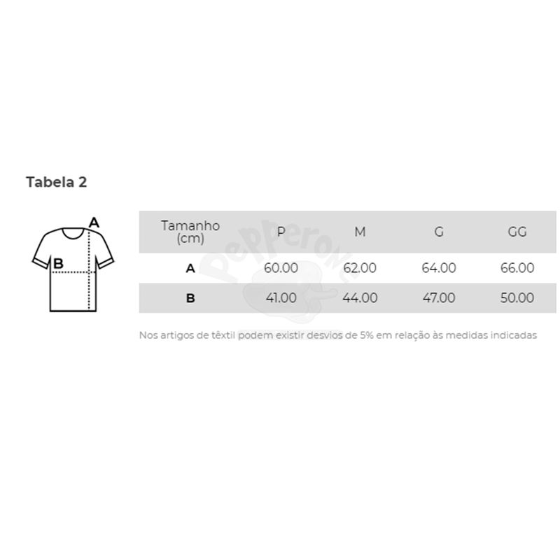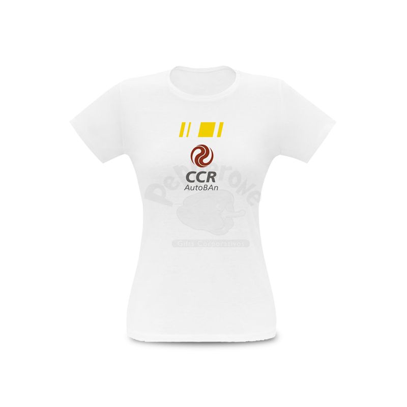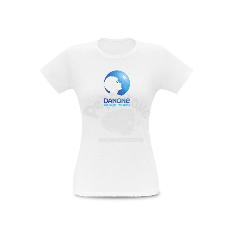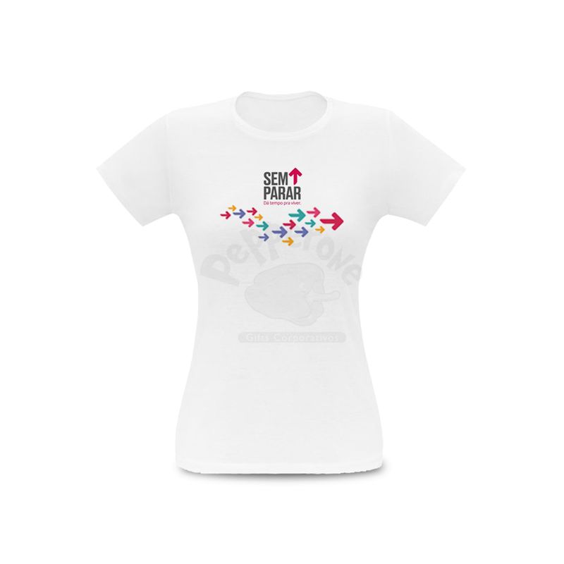 Camiseta feminina produzida em malha jersey 100% algodão (150 g/m²). Peça cortada e cosida com costura dupla nas. Tamanhos: P (A60 x B41cm), M (A62 x B44cm), G (64 x 47cm), GG (A66 x B50cm). Personalização em transfer. Obs: Nos artigos de têxtil podem existir desvios de 5% em relação às medidas indicadas.