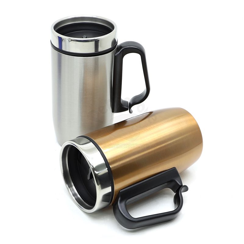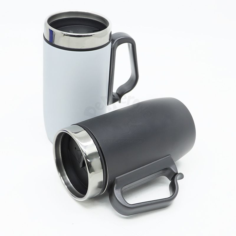 Caneca Térmica de metal personalizada com parede dupla que conserva a temperatura da bebida por mais tempo, possui capacidade para 275ml, alça plástica com abertura inferior, tampa com abertura principal com proteção retrátil, anel de vedação e base em E.V.A . Ideal para divulgar sua empresa em eventos corporativos, brindes personalizados e campanhas promocionais.