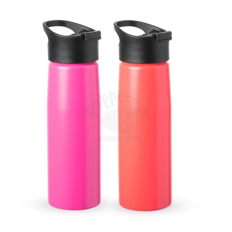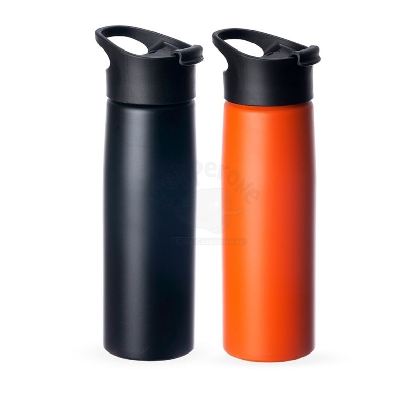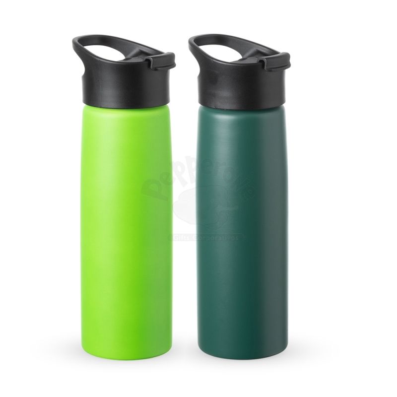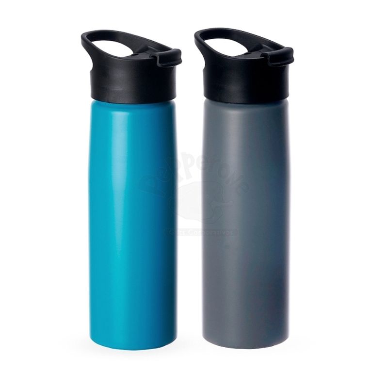 Squeeze de metal 750ml com pintura fosca. Squeeze com tampa plástica rosqueável, alça e tampa protetora para o bocal. Ideal para brindes promocionais e eventos corporativos. Ideal para brindes promocionais e eventos corporativos.