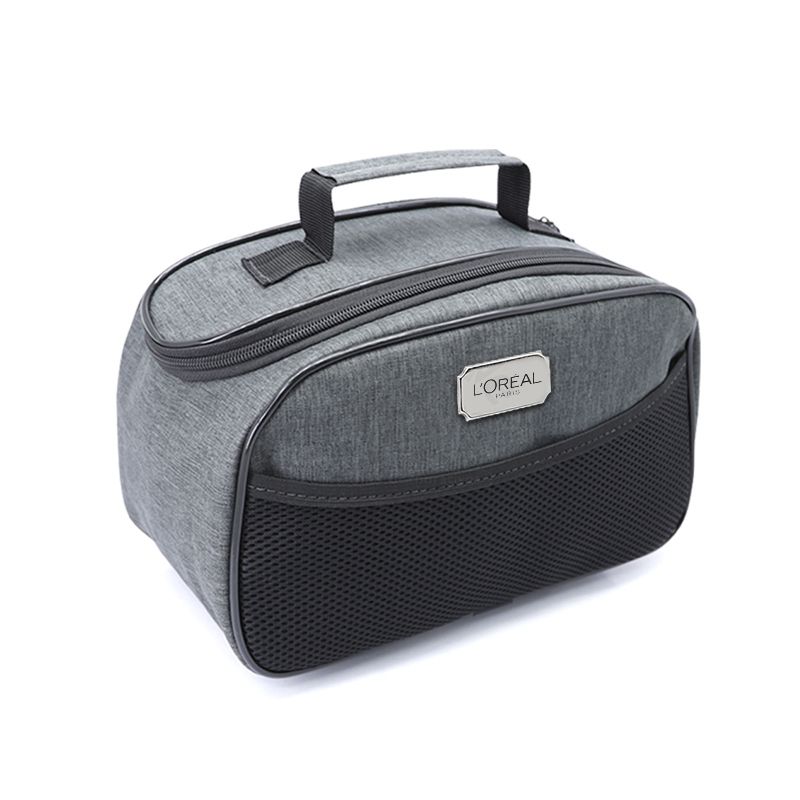 Necessaire personalizada produzida em nylon. Possui alça de mão confortável, 2 cursores diferenciados, bolso frontal em telinha, amplo espaço interno para guardar maquiagem, cremes, produtos para higiene diária, pentes, remédios e objetos em geral do dia dia. Ideal para brindes promocionais e eventos corporativos.