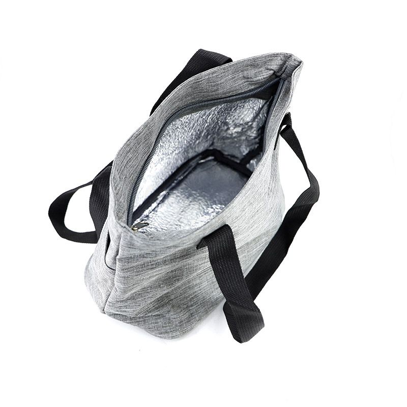 Bolsa térmica personalizada com capacidade para 4 litros. Possui bolso frontal, alça de mão em tecido poliéster, compartimento principal com revestimento metalizado para melhor conservação da temperatura de alimentos e bebida, e fechamento principal superior por zíper. Ideal para brindes promocionais e eventos corporativos.