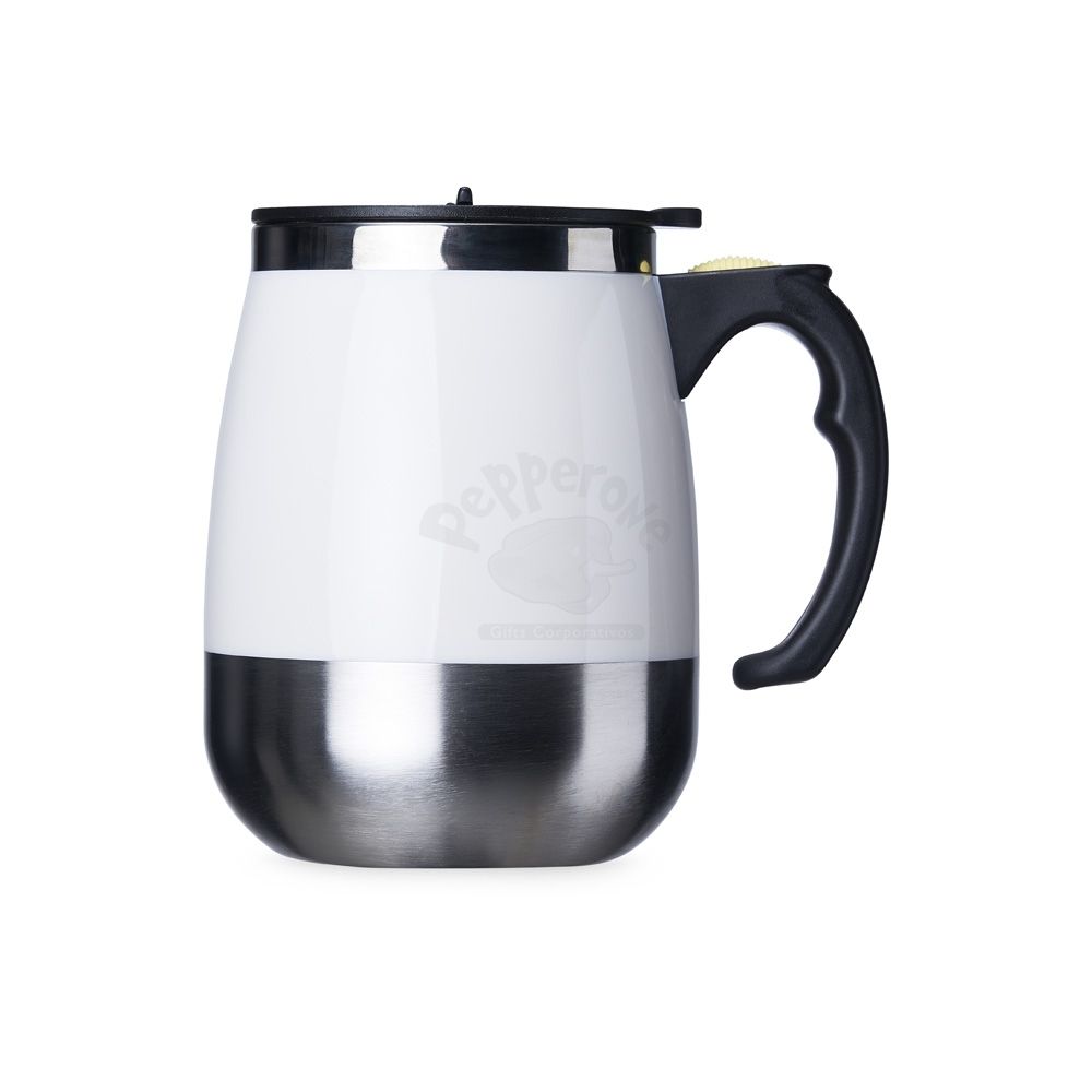 Caneca de inox com misturador de bebida, feita em parede dupla com capacidade de 350ml. Contém tampa plástica com bocal e trava de segurança. Para o funcionamento, utiliza-se duas pilhas AAA (não acompanha).