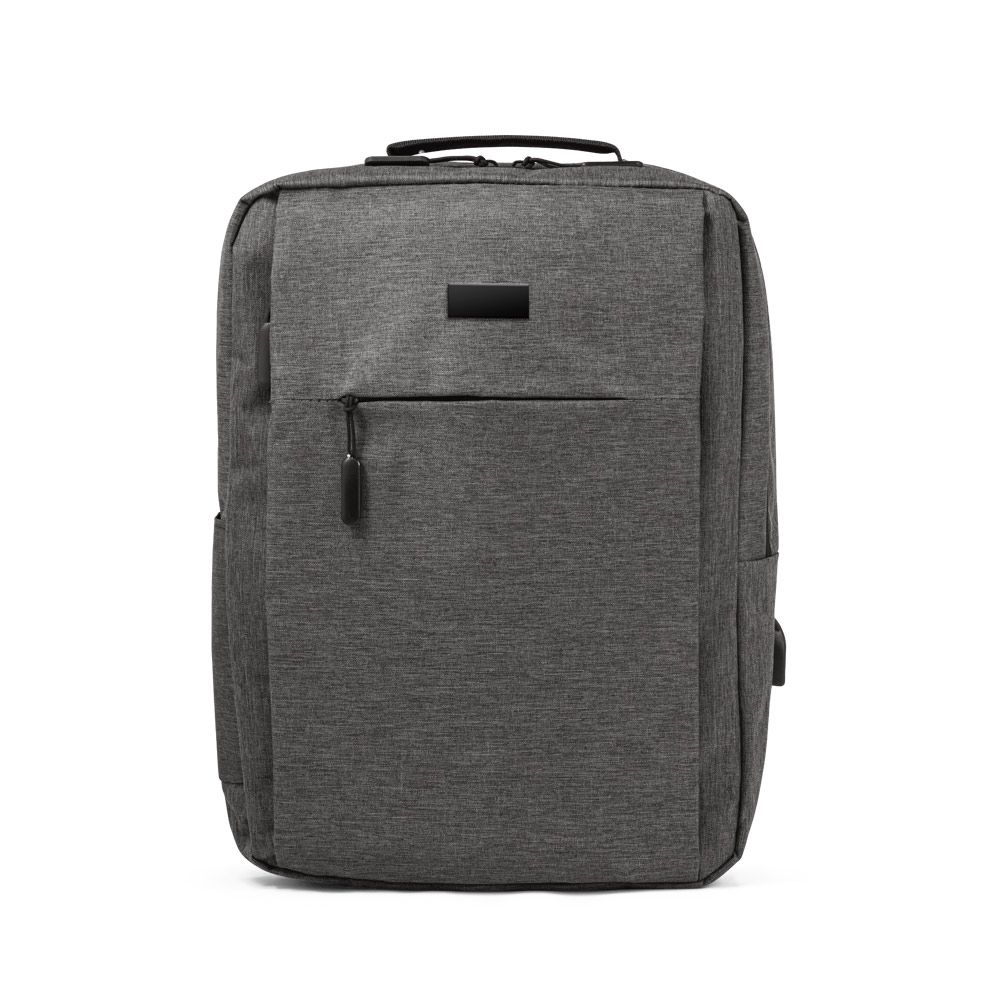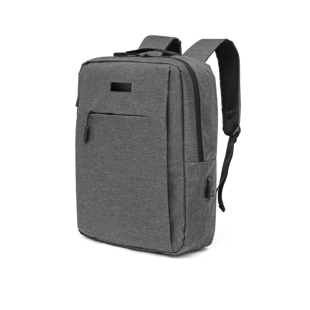 Mochila para notebook em 300D com placa de personalização. Tem 1 compartimento principal com bolso forrado para notebook até 15,6" e diversos bolsos interiores. Contém ainda bolso frontal, lateral e entrada USB.