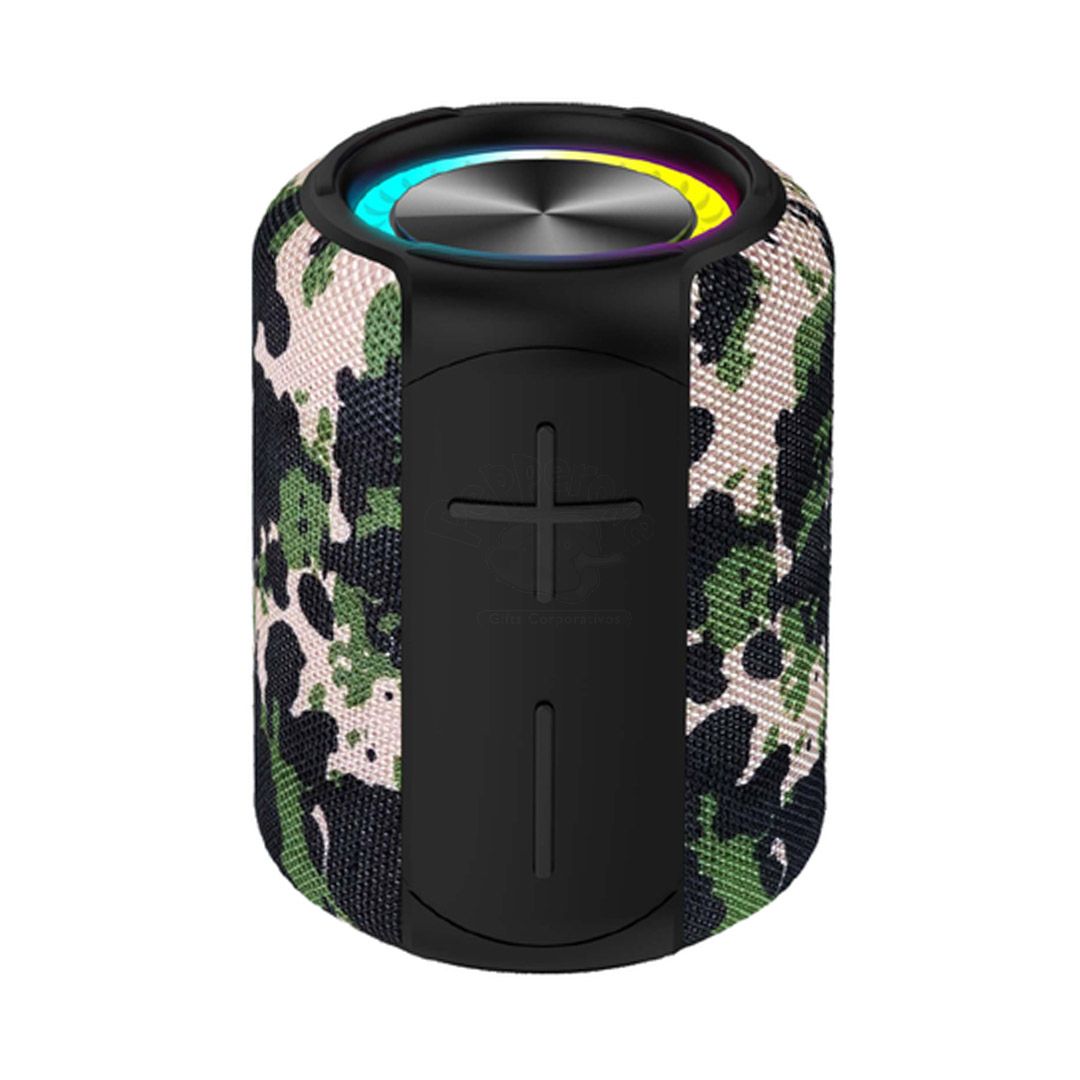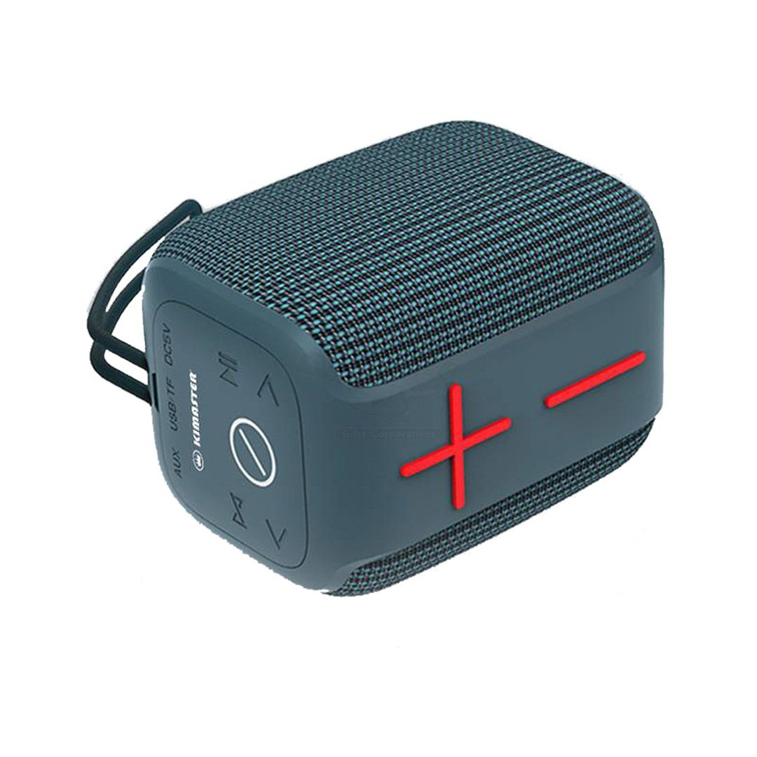 Caixinha de som Bluetooth em tecido, com potência de 10W e bateria com duração até 10 horas. Possui IPX6, ou seja, é resistente a alguns jatos e respingos d’água, mas não pode ser imersa na água. Possui uma alça de corda para que você leve aonde quiser, tornando a caixinha de som portátil.