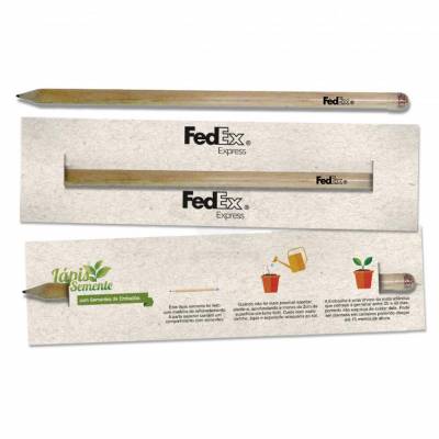 Lápis semente personalizado com embalagem de papel reciclado sem o uso de plástico. O brinde perfeito para divulgar sua empresa em eventos corporativos, brindes personalizados e campanhas ecológicas.