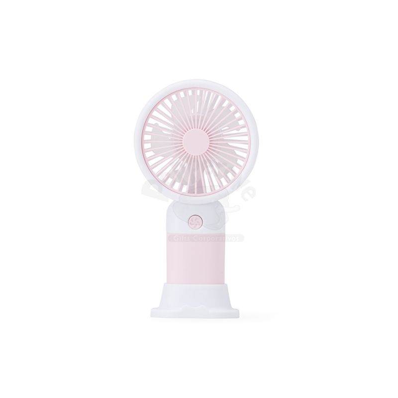 Mini ventilador plástico recarregável com base removível e botão de acionamento. Acompanha cabo usb. Ideal para sua campanha de endomarketing ou premiação de colaboradores.