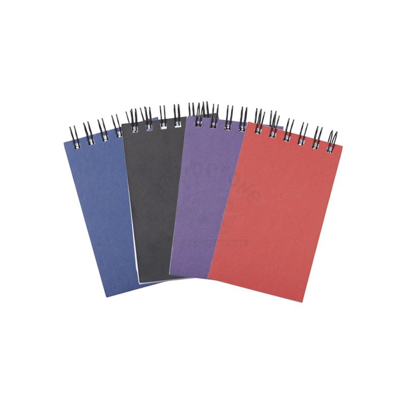 Bloco de anotações capa dura em kraft com wire-o. Contém aproximadamente 100 páginas não pautadas na cor branca. Ideal para brindes personalizados, feiras de cosméticos e eventos corporativos.