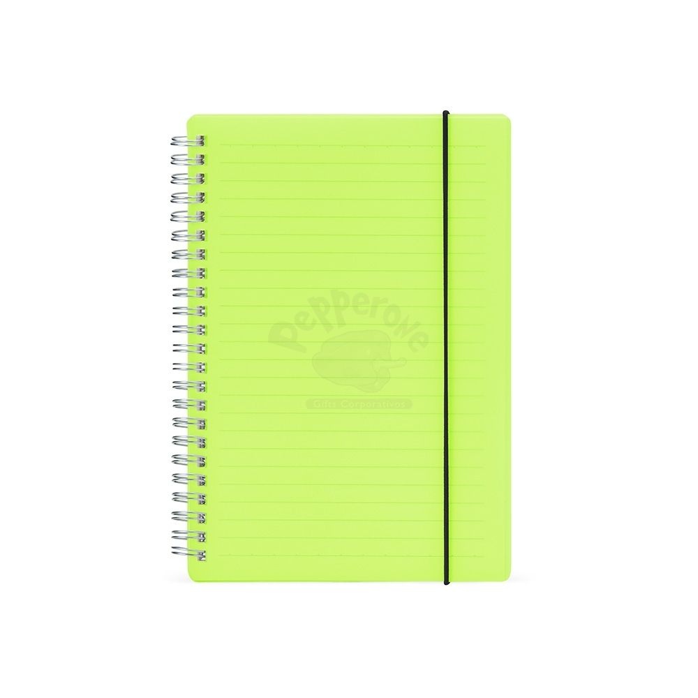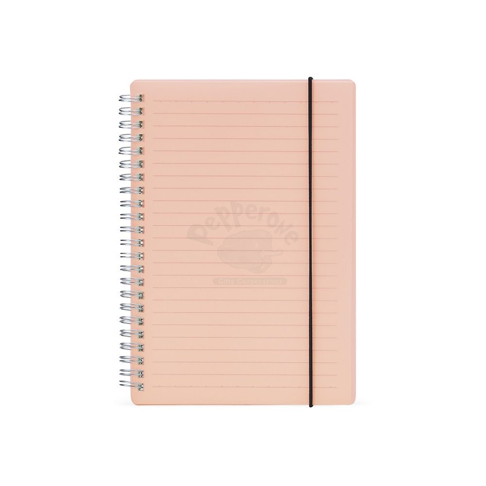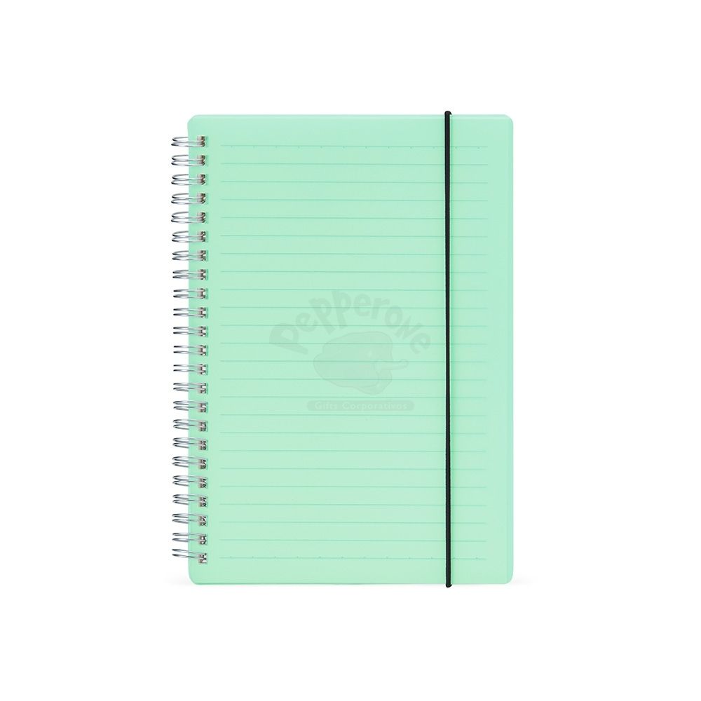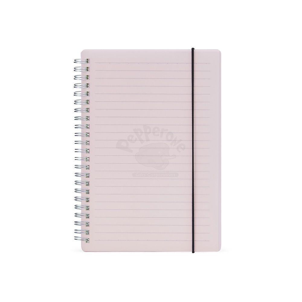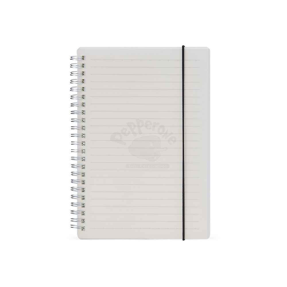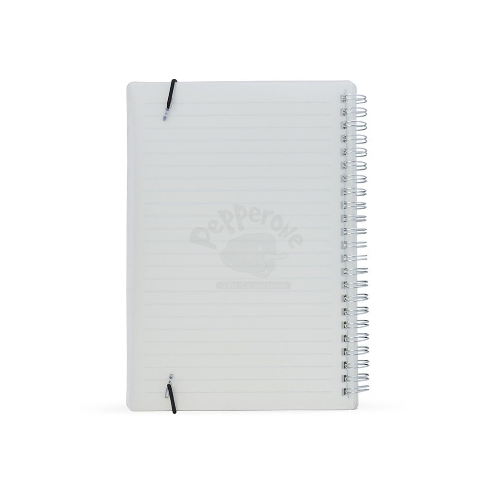 Bloco de anotação A5 com capa plástica e elástico para fechar que impede que abra acidentalmente. Contém aproximadamente 80 folhas marfim com pauta. Também conta com uma encadernação wire-ô, que garante que suas páginas não se soltem ou sejam perdidas. Ideal para divulgar sua empresa em eventos corporativos, brindes personalizados e campanhas promocionais.