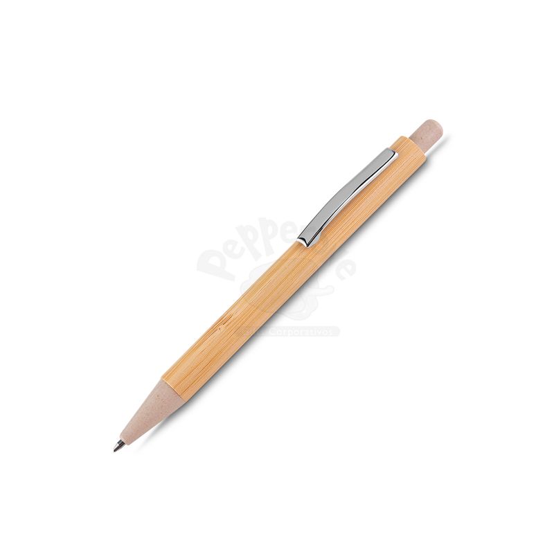 Caneta de bambu personalizada com click e ponteira de fibra de trigo / ABS. Possui esferográfica azul e acionamento da escrita por click. Acompanha estojo de papel impresso com imitação em bambu. Ideal para divulgar sua empresa em eventos corporativos, brindes personalizados e campanhas promocionais.
