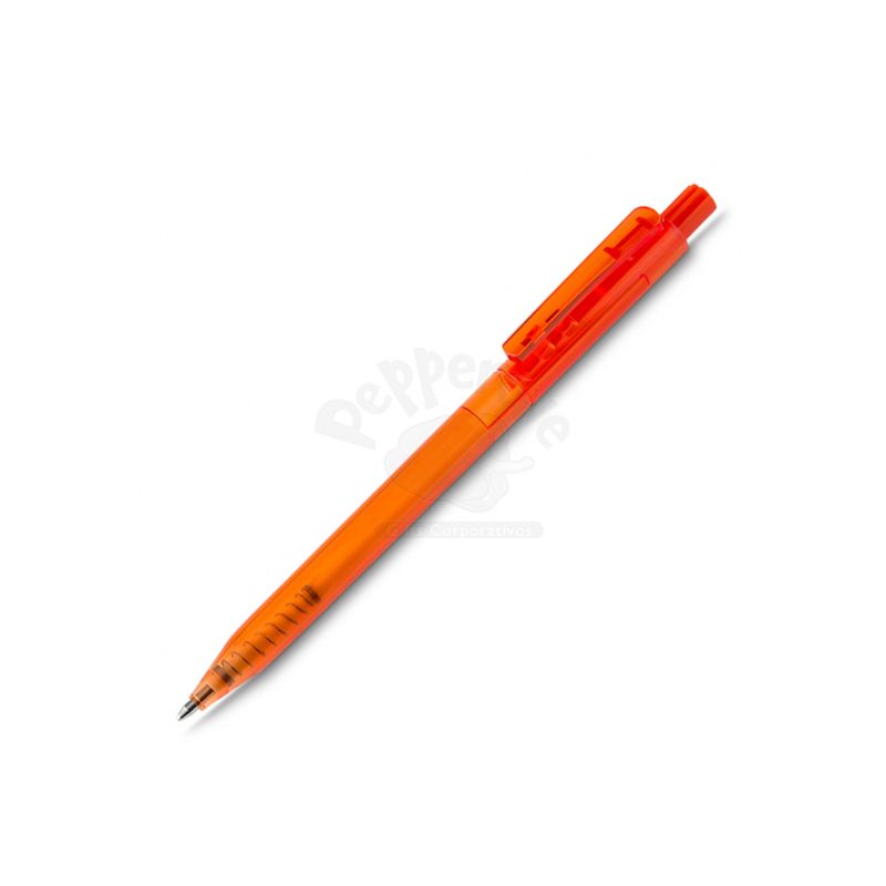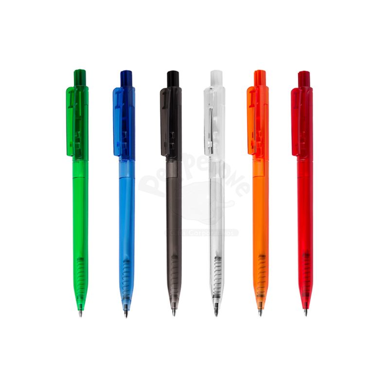 Caneta personalizada produzida em plástico translucido colorido. Possui acionamento através da ponteira superior e bloqueia com o Clip. Ideal para brindes promocionais, campanhas e eventos corporativos.