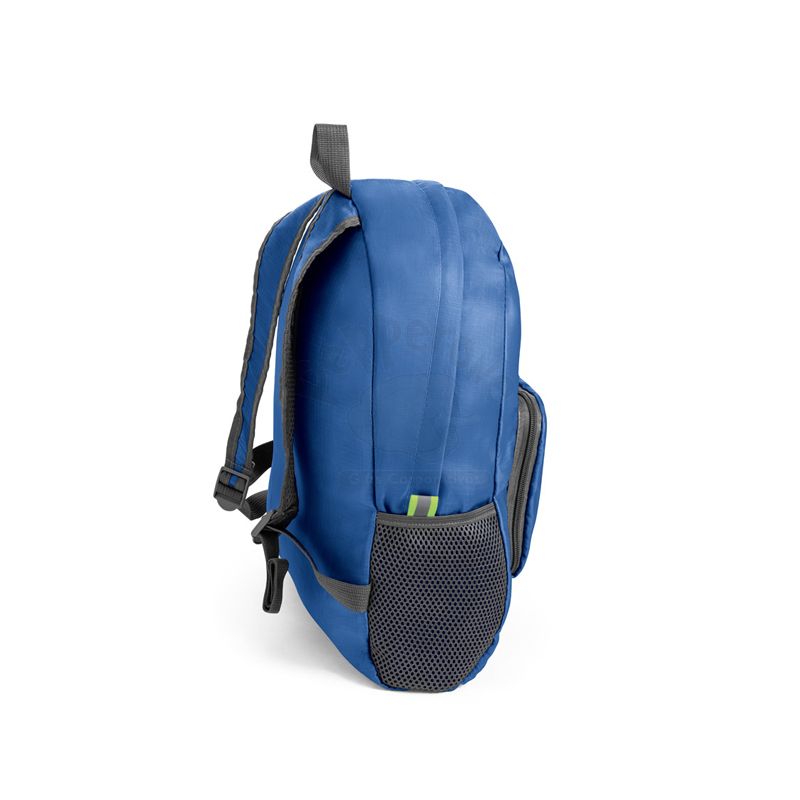 Mochila dobrável personalizada produzida em nylon 210 ripstop, possui bolsos laterais de tela forrada, bolso frontal com fechamento em zíper, alça de mão e alça de ombro ajustáveis. Leve e confortável, após o uso basta dobrar e guardar, levando em consideração a material prima do produto juntamente com seu diferencial de ser um item dobrável é inevitável que o produto apresente aspecto de amassado. Ideal para brindes promocionais e eventos corporativos. Tamanho dobrada: 195 x 160 x 330