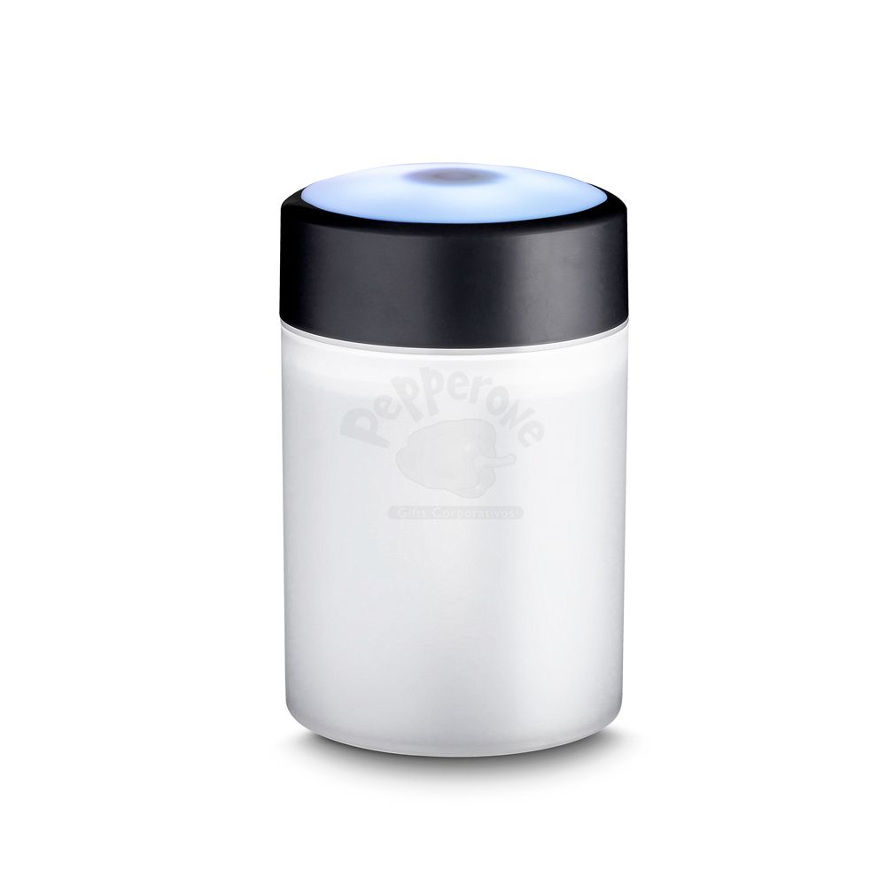 Umidificador de ar com difusor de óleo essencial à base de água via USB. Feito com ABS reciclável+ PP, com capacidade de 300ml. Na parte da tampa sua luz pode ser acesa tendo a possibilidade de cor LED OU RGB, ideal para uso em escritório ou em casa. Acompanha cabo USB.