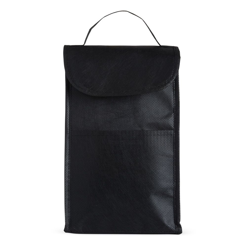 Bolsa térmica de rPET com capacidade de 4 litros com bolso frontal. Feita a partir de materiais recicláveis.