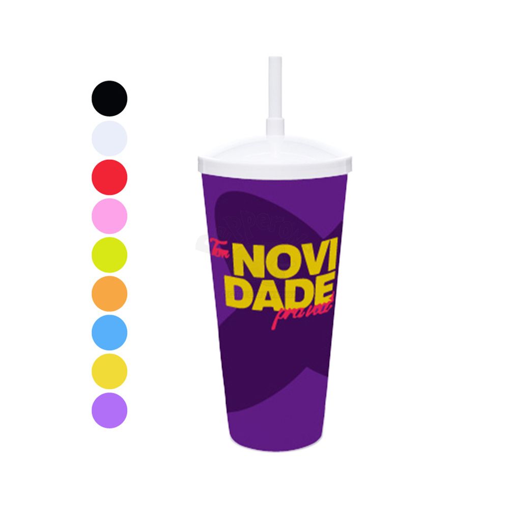 Copo de plástico de 1L personalizavel com tampa e canudo.