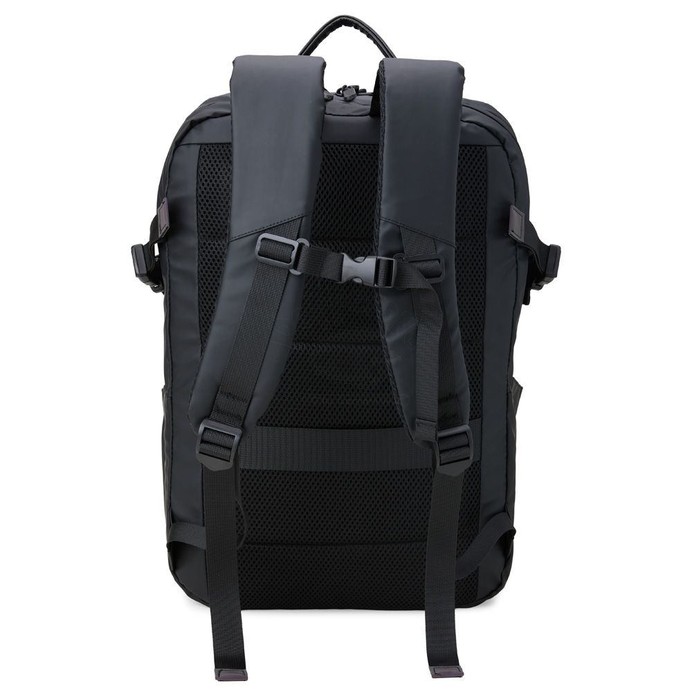 Mochila de 30 Litros confeccionada em couro sintético resistente à água. Contém três compartimentos, sendo um deles exclusivo para acomodar capacete de bicicleta e outro para notebook de 15,6" com revestimento aveludado.