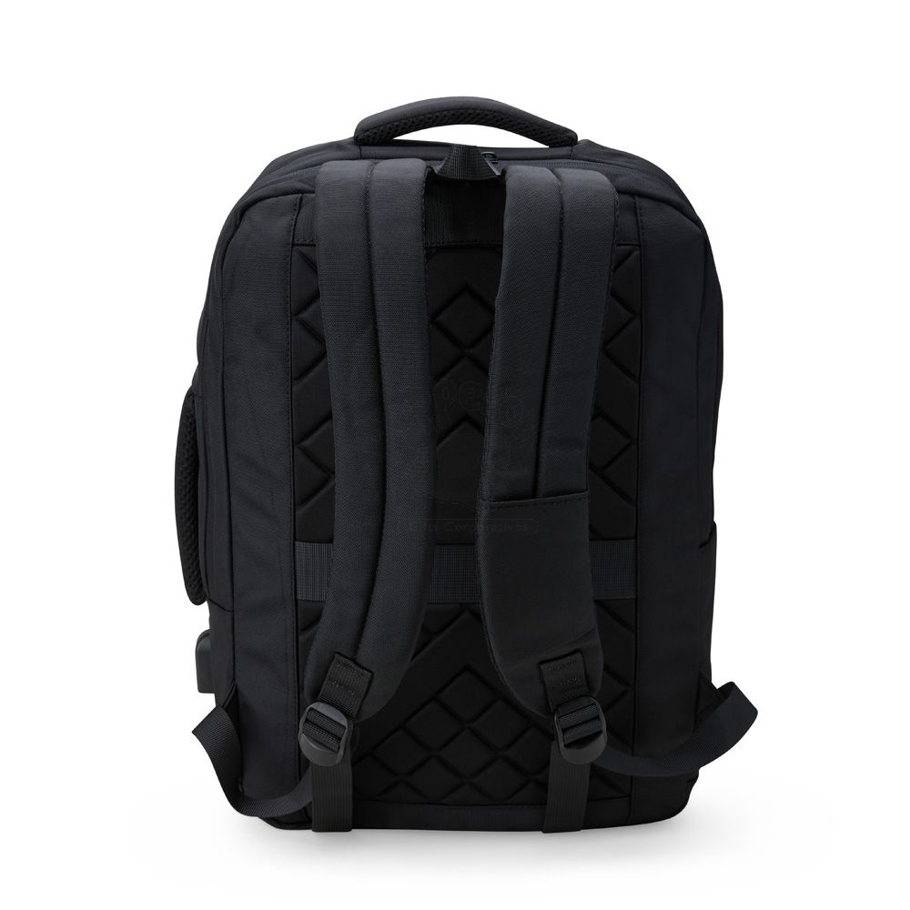 Mochila confeccionada em Nylon 20 Litros com 4 compartimentos, sendo o principal com bolso para notebook 15,6. Possui um bolso externo, bolsos e divisórias internas para acessórios, a mochila possui suporte externo USB, alça com bolso integrado para cartões, alça para engate em malas de viagem e duas alças de mãos, sendo um delas para o transporte da mochila no formato pasta.